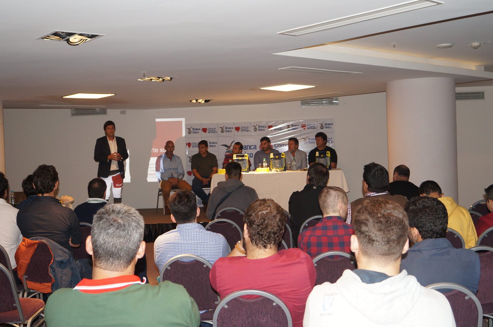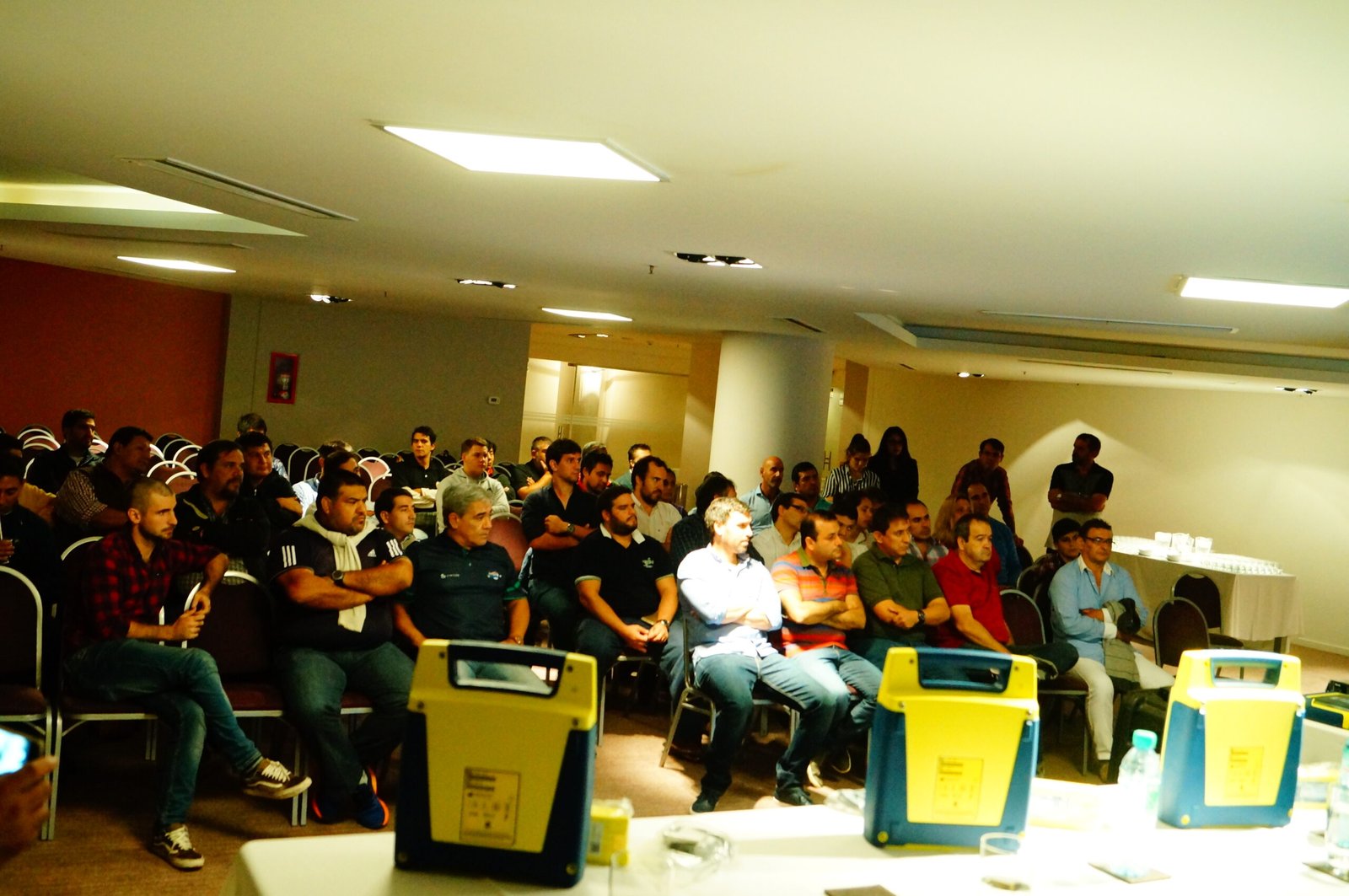 Ante un nutrido grupo de rugbiers y deportistas el médico cardiólogo Mario Fitz Maurice, explicó por qué es necesario conocer el uso del Desfibrilador Externo Automático (DEA) y la importancia de saber efectuar resucitación cardiopulmonar. Recordó que en Argentina 40.000 personas por año sufren afecciones cardíacas y muchas muertes podrían evitarse con un correcto protocolo.