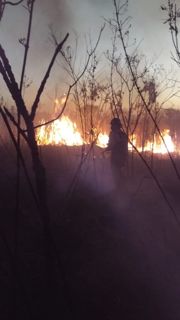 A las 22 horas del viernes, en la reserva Campo San Juan de Santa Ana, los uniformados trabajaron arduamente para sofocar el incendio de un pastizal evitando que las llamas lleguen al casco urbano.