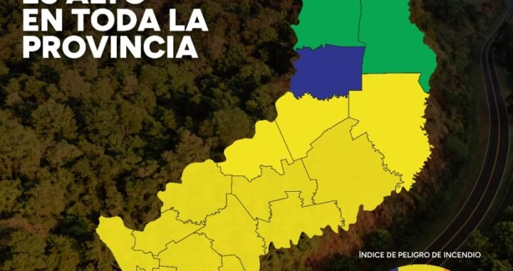 La zona sur de nuestra provincia se encuentra bajo índice extremo por riesgo de incendios. Con una sensación térmica que ayer superó los 47°C, déficit de lluvias y ráfagas de viento más intensas, cada vez más departamentos de Misiones se encuentran en alerta roja por riesgo extremo de incendios forestales y rurales. Esta condición exige la máxima precaución y responsabilidad por parte de todos para proteger el patrimonio de nuestra provincia.