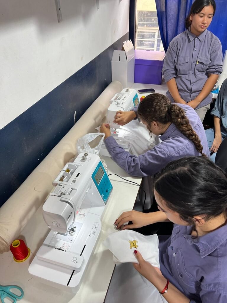 Pero el impacto del proyecto trasciende lo estrictamente formativo. En el marco de la iniciativa “Cobijar con amor”, los alumnos del curso Fundamentos del Diseño Textil Funcional ya comenzaron a traducir el aprendizaje en acción concreta: elaboran 100 mantitas bordadas destinadas al Hospital Materno Neonatal, a través de la Asociación Civil Dar a Luz. Se trata de un claro ejemplo de cómo la educación técnica puede generar valor social inmediato, integrando formación, solidaridad y territorio.