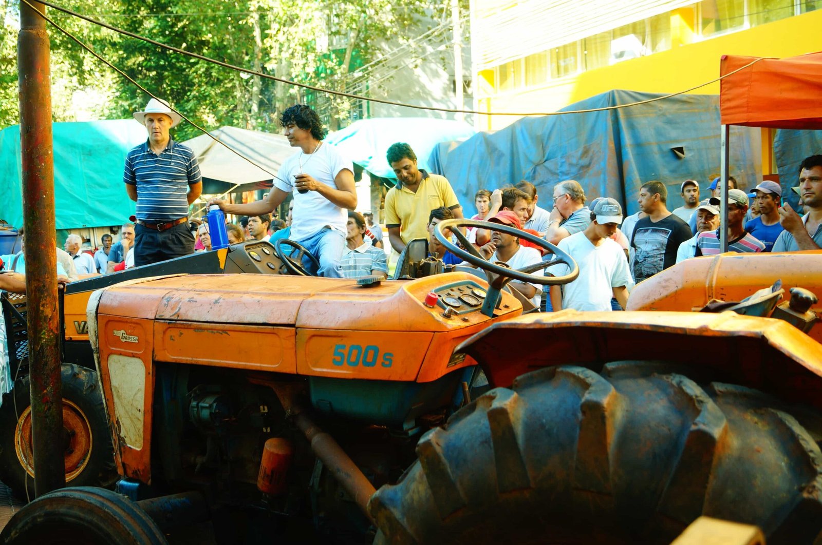 Sobre uno de los tractores estacionados frente al INYM, Peterson esta mañana planteó que si no había dialogo la protesta iría a Corrientes para que los escuche el Presidente. El cansancio de una semana los tenía crispados. Pero esperaban con ansias la reunión planificada para media mañana.
