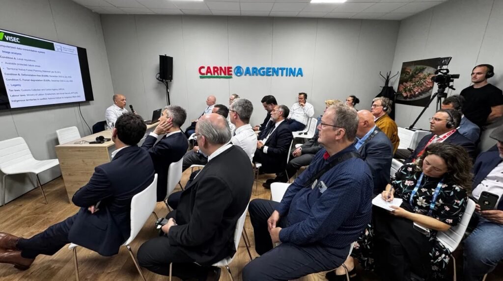 Por su parte, Gerardo Leotta detalló el funcionamiento del sistema VISEC Carne, diseñado para garantizar la trazabilidad, legalidad y cumplimiento ambiental exigidos por el nuevo reglamento europeo.