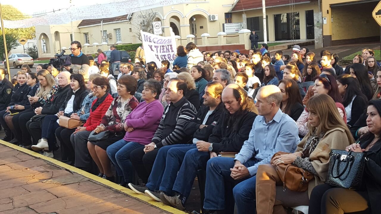 Del acto participaron el vicegobernador Oscar Herrera, el intendente local Diego Sartori, el secretario de derechos humanos de la Unión de Docentes de Misiones Aníbal Guraski, alumnos, docentes y vecinos.