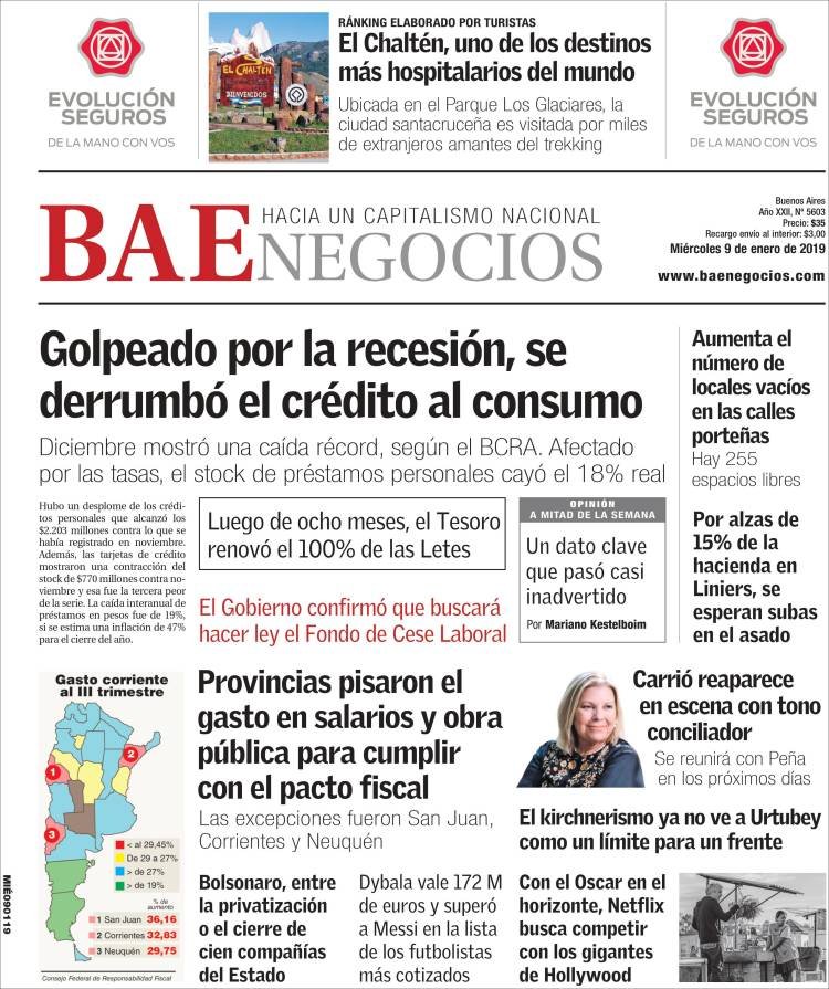 Las LEBAD entregadas se ajustan por la tasa Badlar Privada, la que se paga por depósitos mayores a un millón de pesos, más 400 puntos básicos para la serie que tiene vencimiento el 18 de septiembre y 550 puntos adicionales la que caduca el 22 de diciembre.