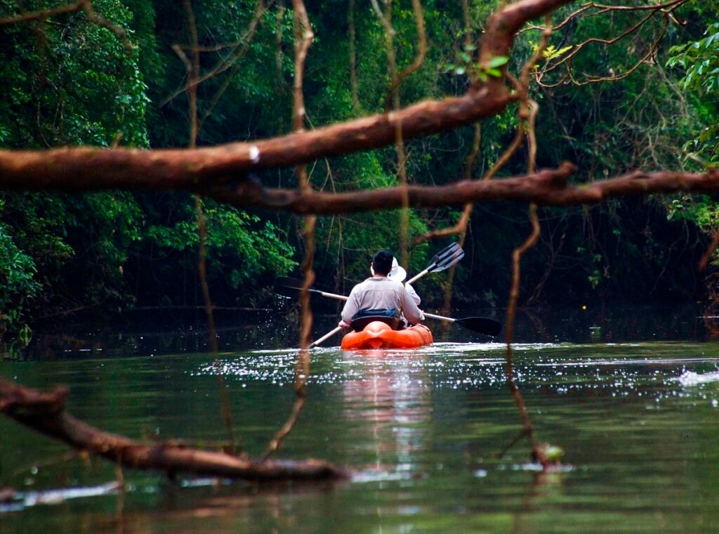 Télam 25/01/2018 Misiones: El canotaje por tranquilos arroyos semiocultos por la selva misionera que desembocan en el río Iguazú, con retorno a pie por senderos entre el sotobosque, combina el relax y una saludable actividad física en un ambiente natural protegido, y es una de las propuestas de turismo sustentable de la la Reserva Natural Yacutinga, en el extremo noreste del país frente a la costa brasileña. Foto: Archivo Télam/cf