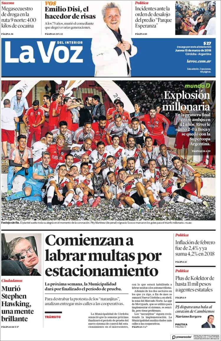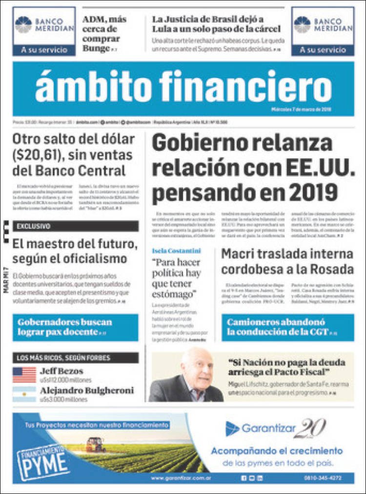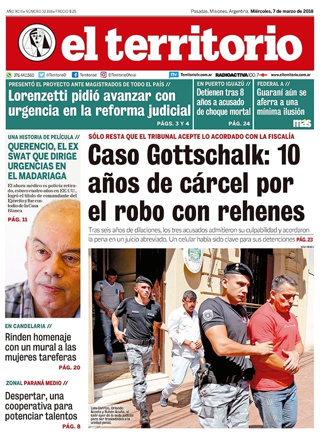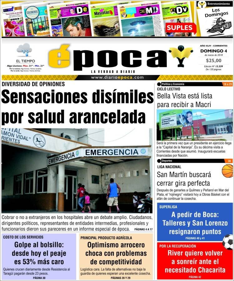 A continuación, reproducimos las tapas de los principales diarios de del país. Los temas predominantes son el discurso del Presidente de la Corte, las proyecciones económicas, el dólar, la despenalización del aborto, golpe al narcotráfico en Corrientes y el aumento de los servicios.