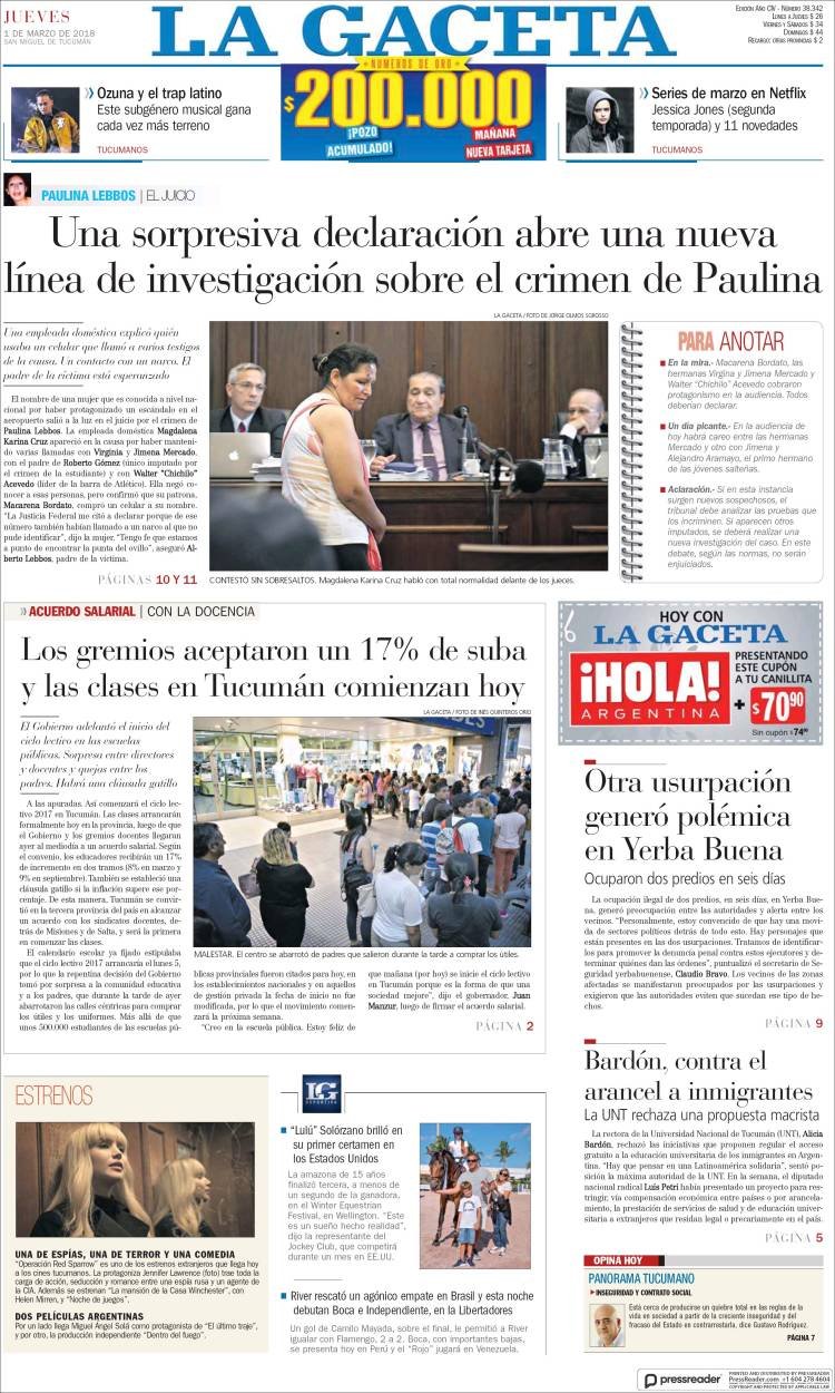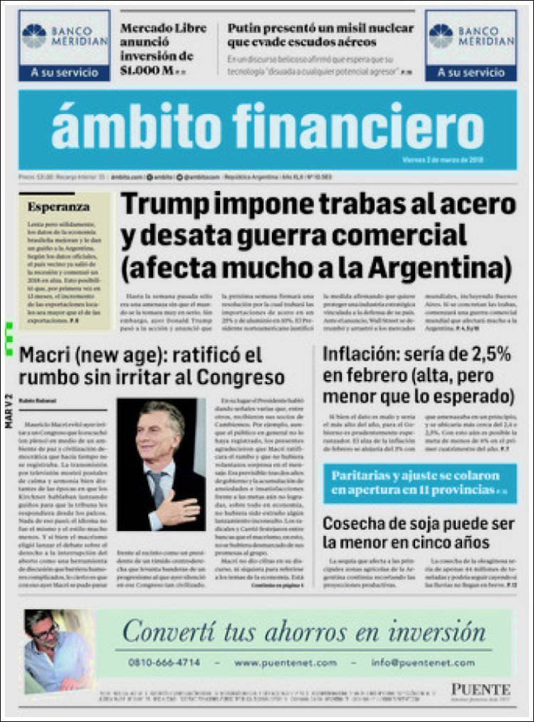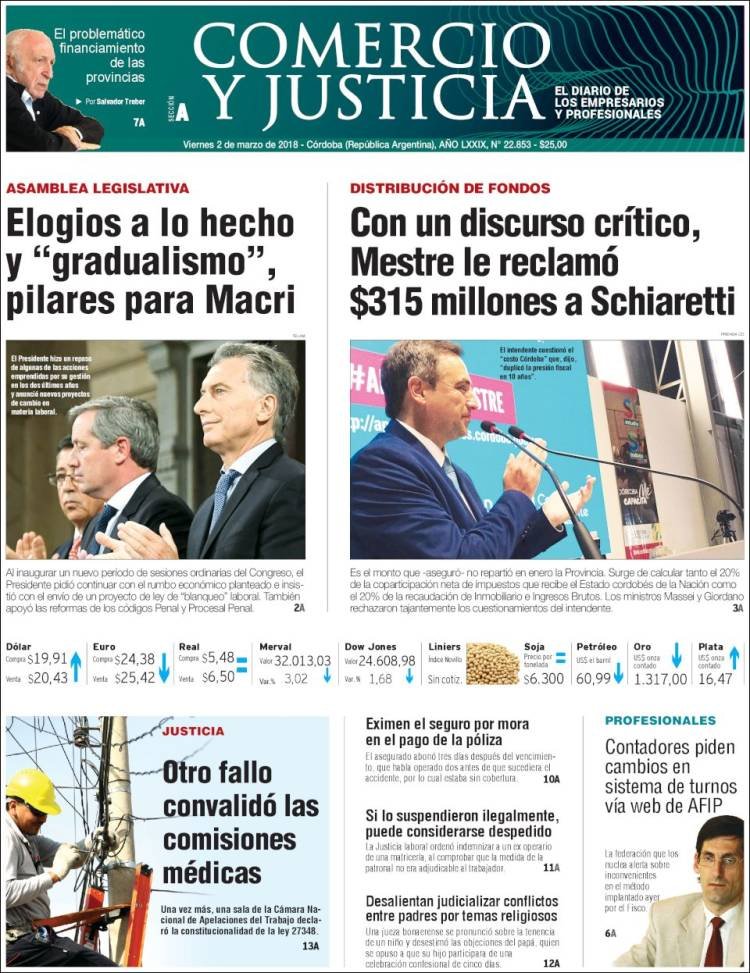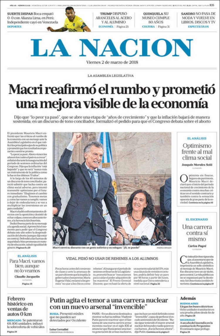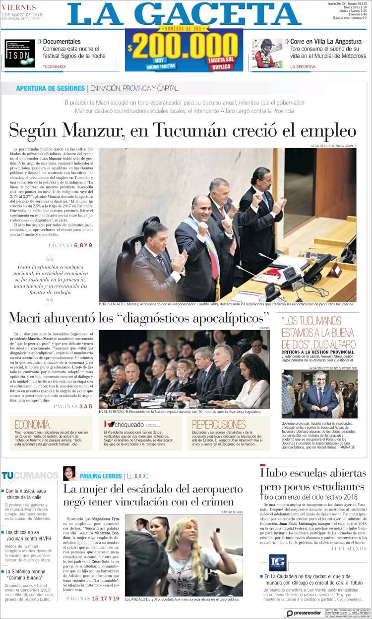 A continuación, reproducimos las tapas de los principales diarios de del país. Los temas predominantes son la apertura de sesiones a cargo de Mauricio Macri, la balanza comercial con Brasil, el precio de los combustibles en Misiones con la reforma impositiva.