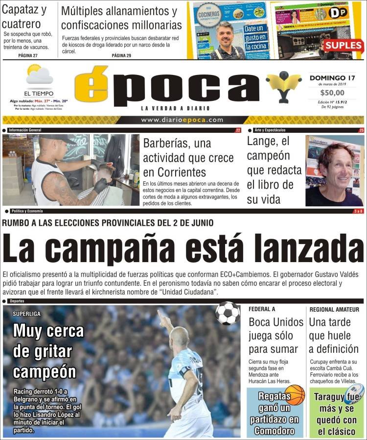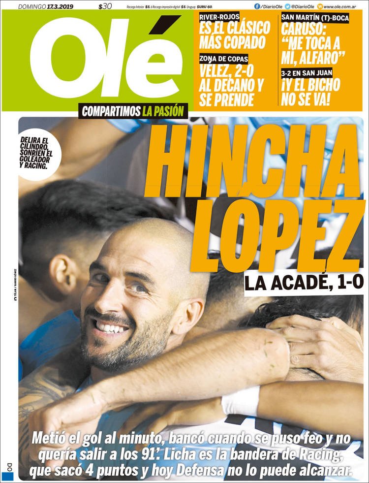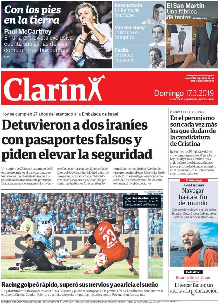 Baltazar Garzón en la que defiende al juez federal de Dolores, Ramos Padilla. Racing cada vez más cerca del título tras haberle ganado ayer a Belgrano 1 a 0.