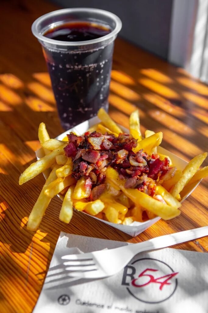 Las papas fritas se elaboran con ingredientes de primera calidad y llevan el distintivo sabor de B54, garantizando una experiencia incomparable en cada bocado y enriqueciendo una amplia variedad de platos. Doradas y crocantes por fuera, blanditas por dentro y servidas bien calientes, desatan una explosión de sabores. Además, ofrecen riquísimas combinaciones, como French Cheddar & Bacon, Fries & Eggs, Fries Provenzal, Parm & Herbs Fries, Rustic Fries, y Fries Cheddar.