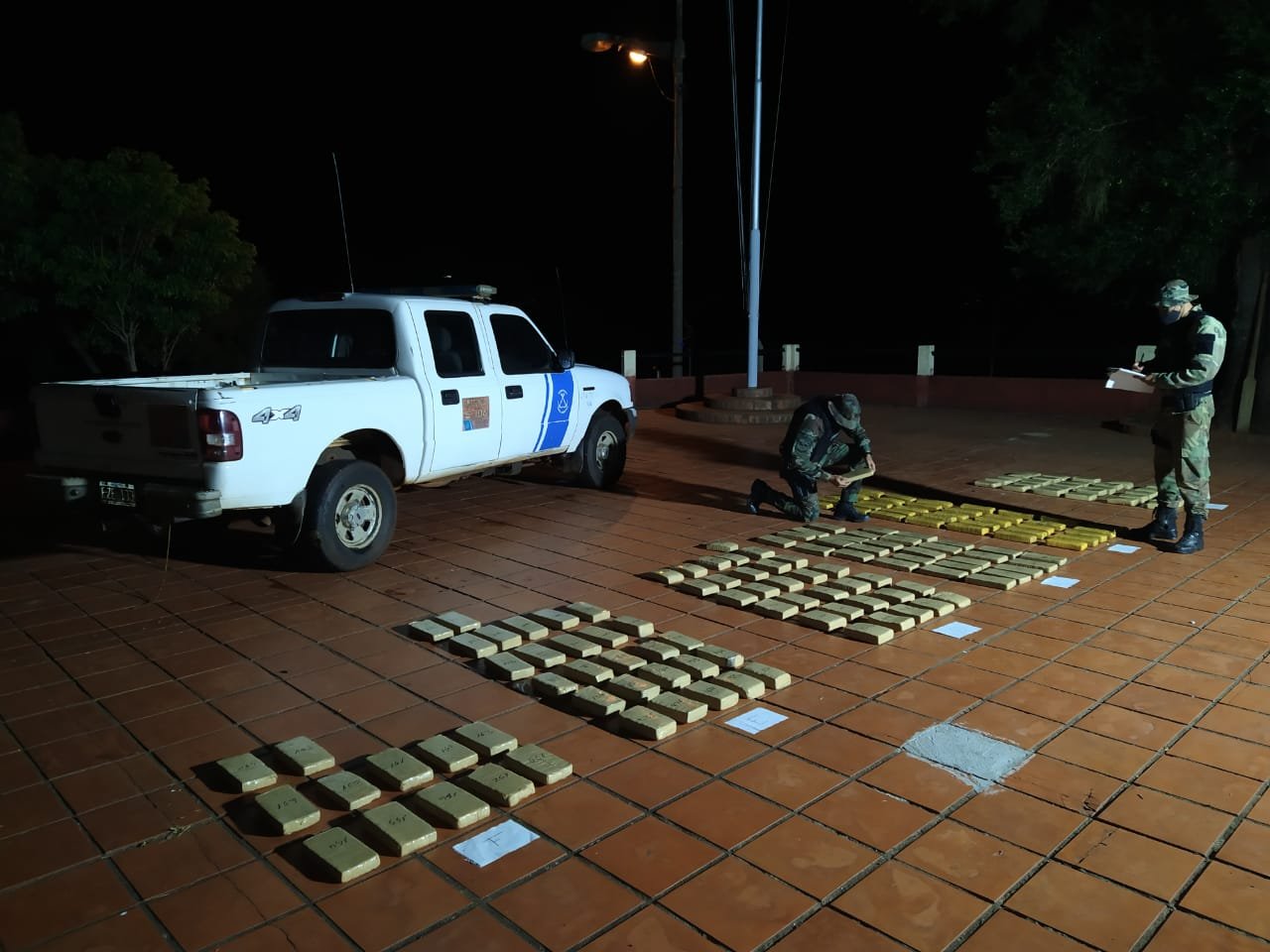 El operativo comenzó cuando una patrulla de la Fuerza, que realizaba tareas de control de la frontera fluvial del país, observó a cuatro individuos manipulando bolsas de arpillera y fardos de tabaco desde un tractor con trayler hacia dos embarcaciones embicadas en la costa.