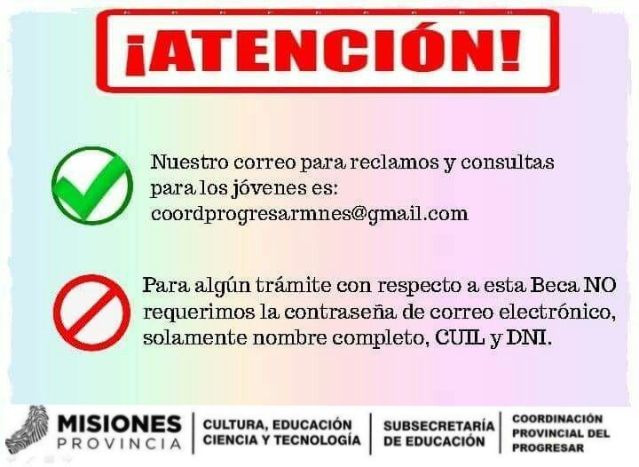 Las Becas Progresar representan un incentivo para colaborar en la ampliación del derecho a la educación, uno de los pilares fundamentales que fortalecen el crecimiento de nuestra provincia y de nuestro país. Desde el gobierno provincial alentamos su implementación, poniendo en valor el derecho de los misioneros y misioneras a educarse, que es la única manera de transitar juntos el camino del crecimiento.