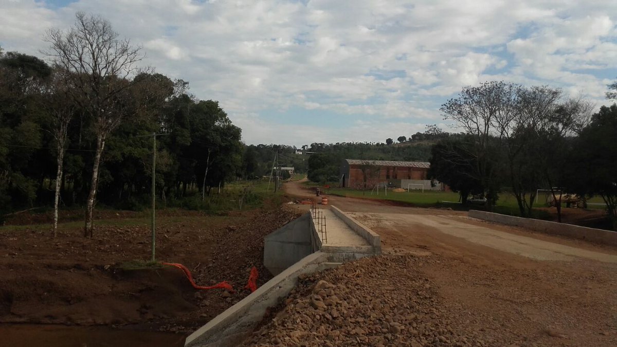 El puente sobre el Arroyo Azul, viaducto ubicado en un camino vecinal de la Colonia Santo Domingo Savio, Departamento de San Ignacio. La obra corresponde al Programa 100 Puentes que ejecuta la Dirección Provincial de Vialidad.