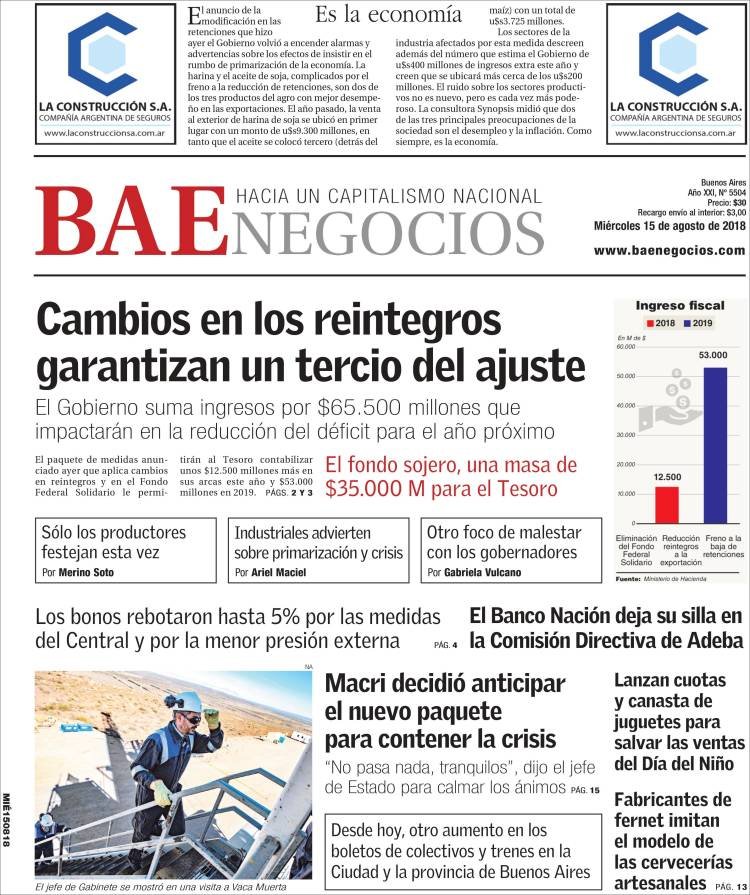 El Gobierno nacional apuesta a la cosecha 2019 después del mal año que tuvo por la sequía que provocó una pérdida de US$ 4.200 millones en la soja. Ese producto es la clave para el ingreso de divisas que la Administración Macri necesita para cumplir con sus compromisos financieros en medio del año electoral. Pero la guerra comercial entre USA y China, la ‘supercosecha’ norteamericana y un desempeño similar en Brasil hicieron que el precio internacional cayera por debajo de los US$ 300 la tonelada, el nivel mas bajo desde 2008.