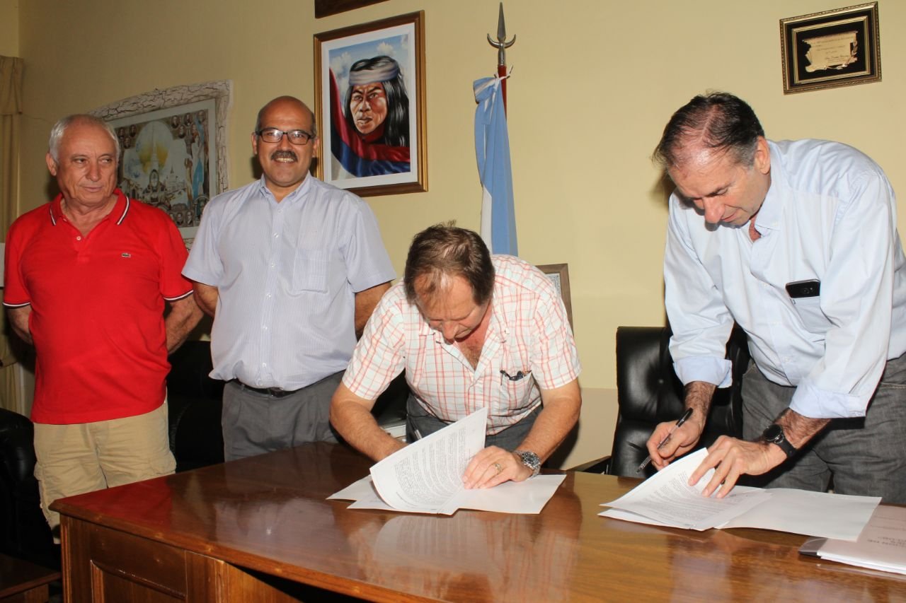 La firma del convenio de comodato se realizó en el edificio de la municipalidad de Corpus Christi, que fue rubricado por Schiavoni y el presidente de club Orlando Lukoski, estando presentes además el intendente local Orlando Rostan, de Gobernador Roca, Rosendo Lukoski, dirigentes y socios del club, y autoridades comunales y de la EBY.