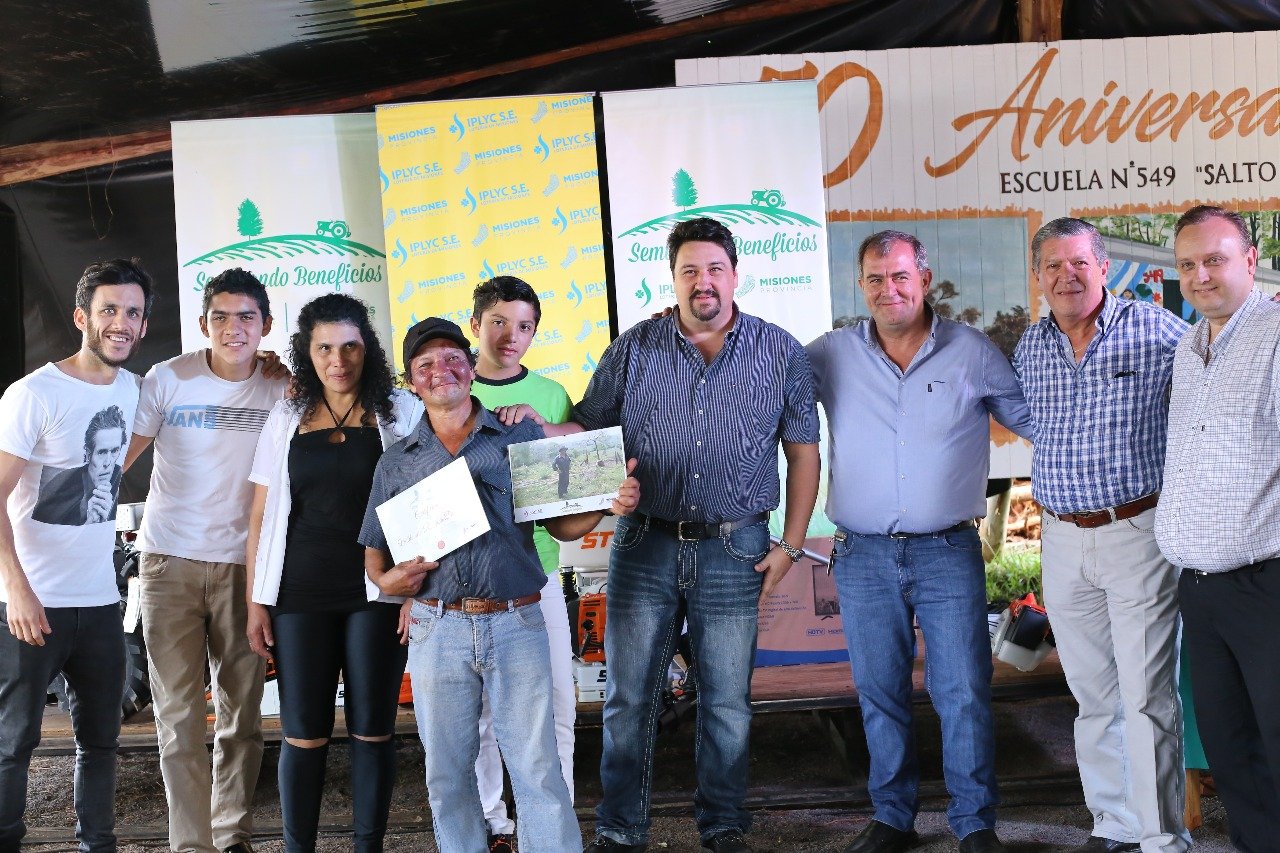 La entrega de los premios se realizó el lunes en la Escuela N°549 “Salto Misterioso” y fue presidida por el presidente del Directorio del IPLyC SE, Eduardo Torres; el intendente de Dos de Mayo, Jorge Kappaunn, y el diputado nacional y candidato a senador, Maurice Fabian Closs, quien asumió el compromiso de seguir preservando el agro misionero y destacó haber duplicado el Fondo Especial del Tabaco (FET), defendiéndolo cada año con convicción para cuidar los derechos de los tabacaleros misioneros.