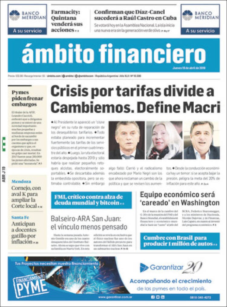 “Aplanamiento de las facturas de los dos bimestres de mayor consumo (mayo-junio y julio-agosto), se podrá posponer el pago del último aumento en tres cuotas bimestrales para todas las facturas emitidas entre el 1 de julio y el 31 de octubre. Las cuotas se harán efectivas en los tres bimestres de menor consumo, el último bimestre de 2018 y los primeros de 2019. Esto es optativo para el consumidor”, aseguró Negri a modo de anuncio de lo acord ado en la Rosada.