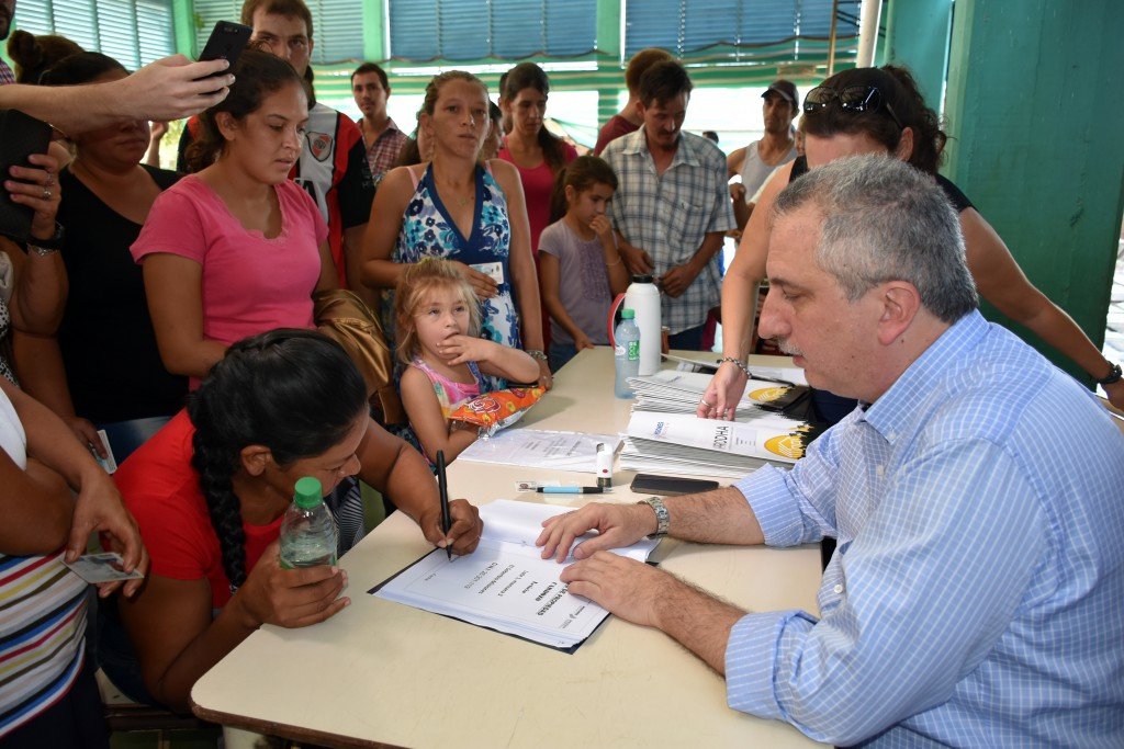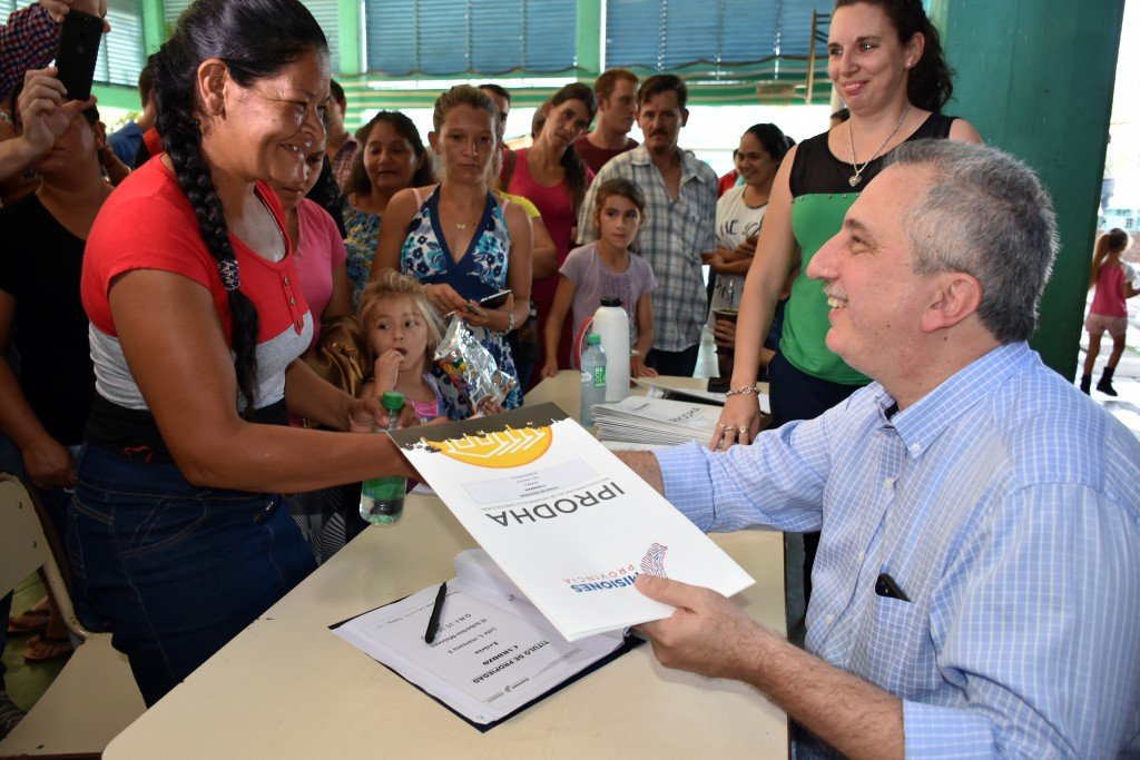 El gobernador Hugo Passalacqua entregó este viernes en El Soberbio 68 títulos de viviendas como primera parte del trabajo de regularización dominial para sectores sociales afectados por inundaciones en el denominado “Barrio Nuevo”.