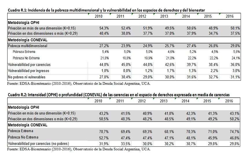 el caso argentino dos diferentes metodologías que, aunque partiendo de un conjunto similar de indicadores fundados en derechos, conducen obviamente a diferentes resul