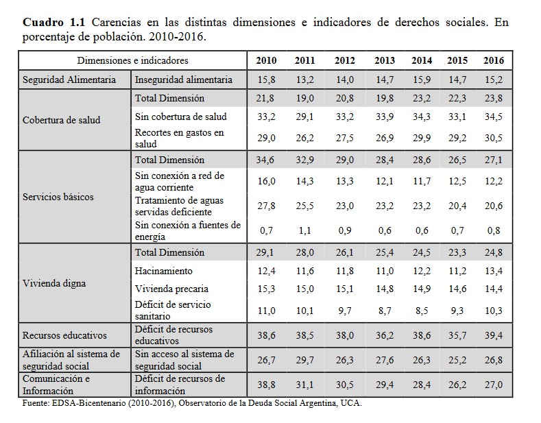 El informe se denomina: “Hacia una erradicación de la pobreza. Dimensiones de la pobreza y la importancia de su medición multifactorial. Argentina urbana 2010-2016”. Completo acá.