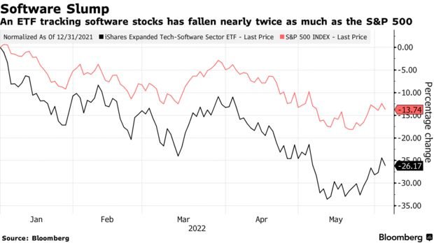 Las políticas monetarias más estrictas por parte de la Reserva Federal provocaron que los inversores huyan de las acciones softwares con valoraciones caras, cuyas ganancias se espera que se entreguen en un futuro lejano.