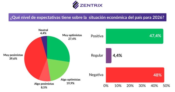 Consultados sobre las expectativas para 2026, el 48% cree que la situación económica del país será negativa, mientras que el 47,4% proyecta un escenario positivo, una diferencia mínima que deja un mapa prácticamente partido en mitades.