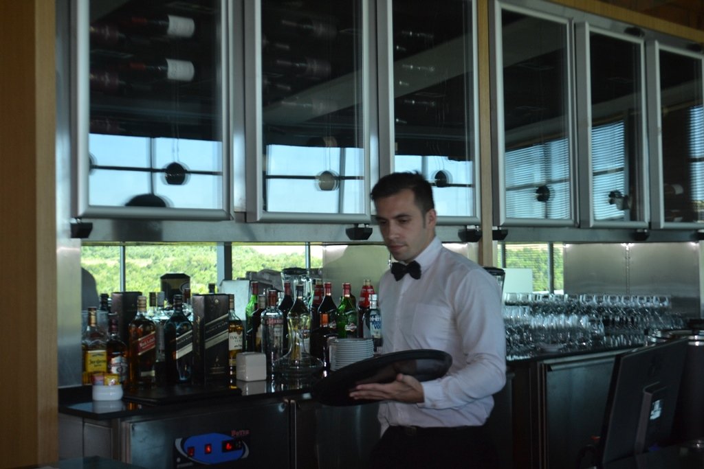 El restaurante está frente al río Paraná. Elevado sobre el terreno, goza de una excelente vista del Paraná mediante una moderna fachada de vidrio. En su interior también hay réplicas temáticas de la cultura jesuítico-guaraní. Tiene capacidad para más de 300 cubiertos. Su fachada exterior, hacia el resto del complejo, reproduce una fachada de iglesia, frente a ella se ubica un espacio abierto, que semeja a las plazas de las armas que había en las misiones.