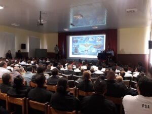 El Teniente de Navío (RE) Guillermo Owen Crippa, Oficial de la Aviación Naval Condecorado por su Heroico Valor en Combate durante la Guerra de Malvinas, brindó una charla en el Liceo Storni – El evento estuvo organizado por el Centro de Graduados del Liceo.