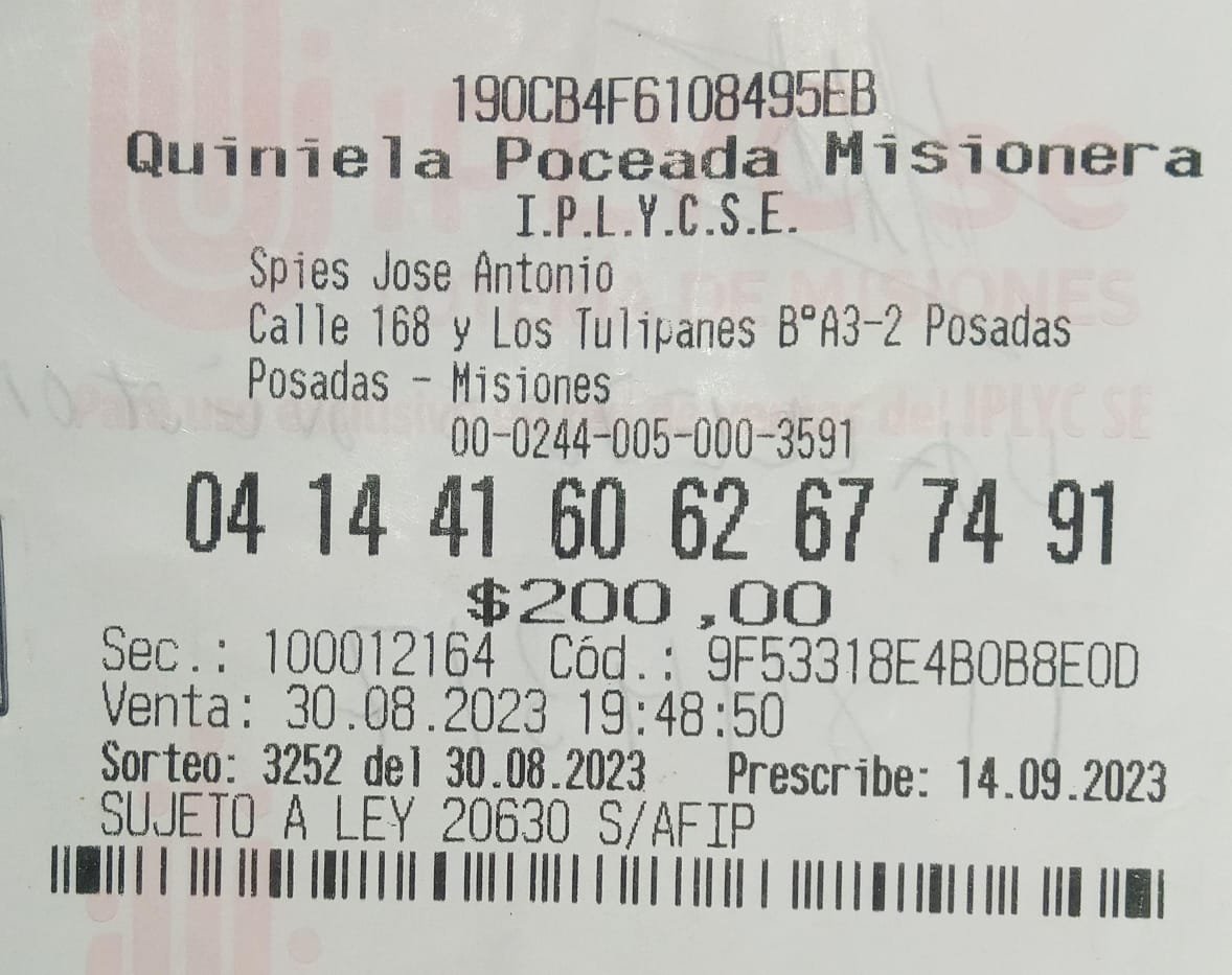 Había hecho su jugada en la Agencia N°244 de la capital misionera, y se hizo acreedor de 17.793.728 pesos en el Sorteo N° 3252 (nocturno).