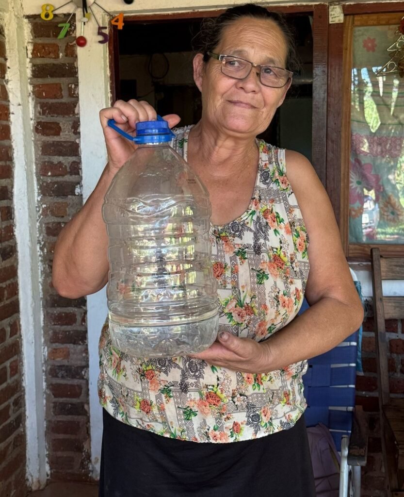 Entre ellos una pareja de pioneros, adultos mayores de más de 70 años, Gladys González y Pablo Ramón Rivas, que educaron a sus hijos, y ahora ya jubilados, querrían poder disfrutar y descansar después de trabajar duramente cosechando mandiocas, y en un secadero de yerba durante gran parte de su vida, y sin embargo ahora padecen la falta del líquido vital.