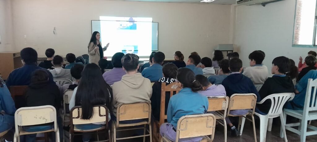 Una charla con 50 alumnos de segundo año de la Epet 1 se realizó el martes 15. El diálogo giró en torno al uso y abuso de las pantallas, redes sociales, juegos de apuestas on line en los jóvenes y las dificultades que acarrea. Durante el encuentro se proyectaron videos que invitaron a la reflexión generando un ida y vuelta entre los alumnos y las profesionales.